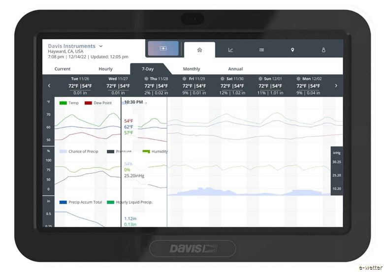 Online: Verbinden die WeatherLink-Konsole mittels sWI-FI mit der WeatherLink-Cloud und erhalten Sie eine detailierte Stunden- und Tagesvorhersage für die nächsten 7 Tage.
